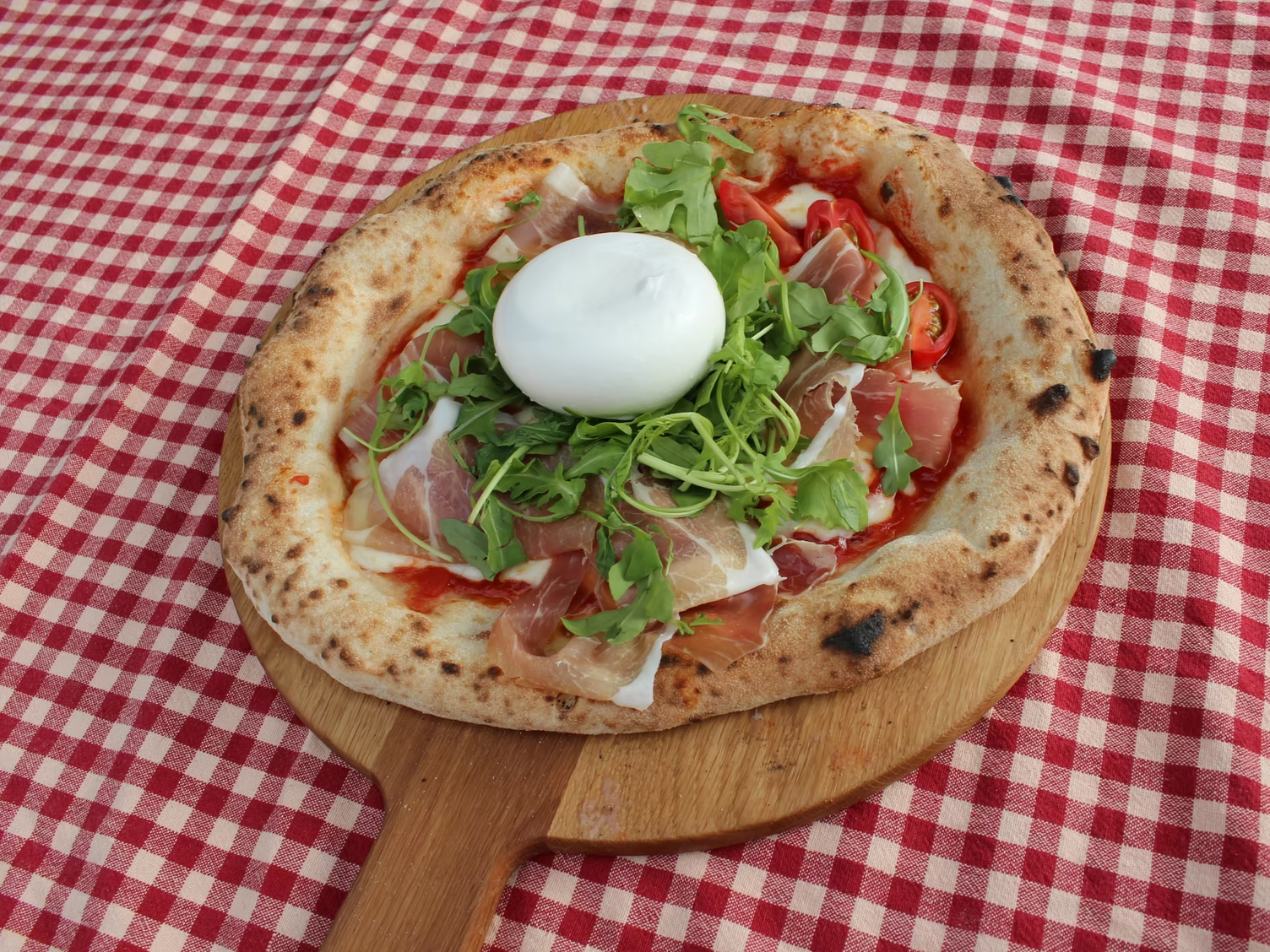 Tomatsauce, fior di latte, grøntsager i sæson og EVO